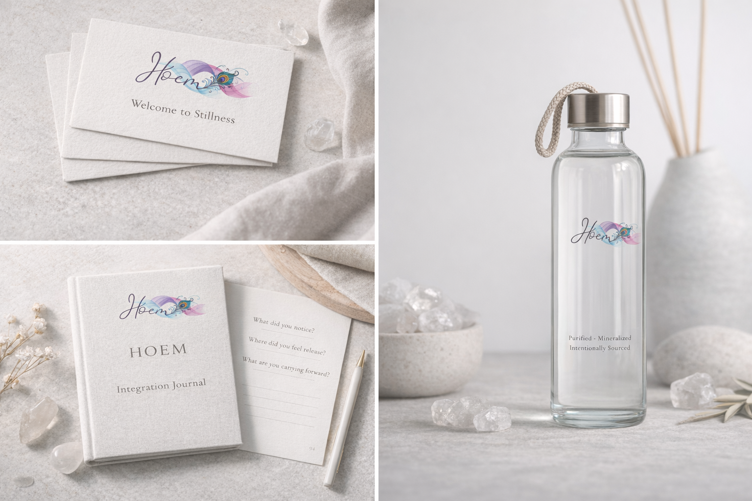 HOEM needed a visual identity that could hold advanced frequency-based wellness technology while feeling deeply human, calm, and spiritually grounded. The brand had to establish trust and emotional safety without appearing clinical, and evoke spirituality without leaning esoteric or ornamental.